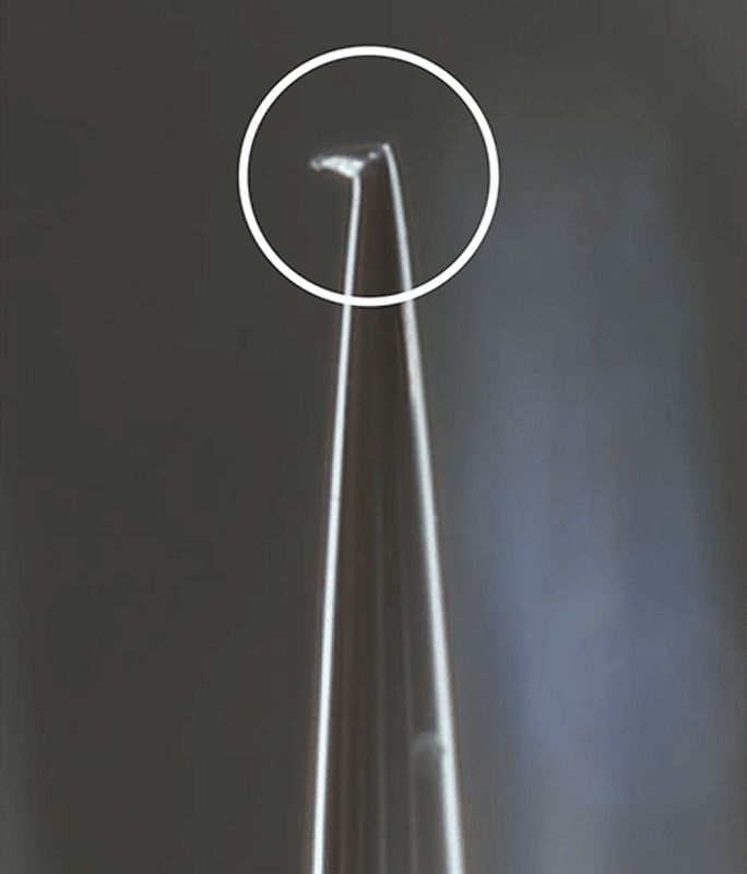 - Hochpräzise, scharfe Nadeln verhindern das Einreißen durch stumpfe oder gebogene Nadeln.