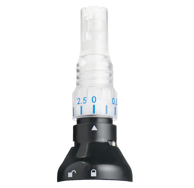 - Die Nadeltiefe wird im Patronenkopf und nicht im Stift eingestellt, um absolute Genauigkeit zu gewährleisten.